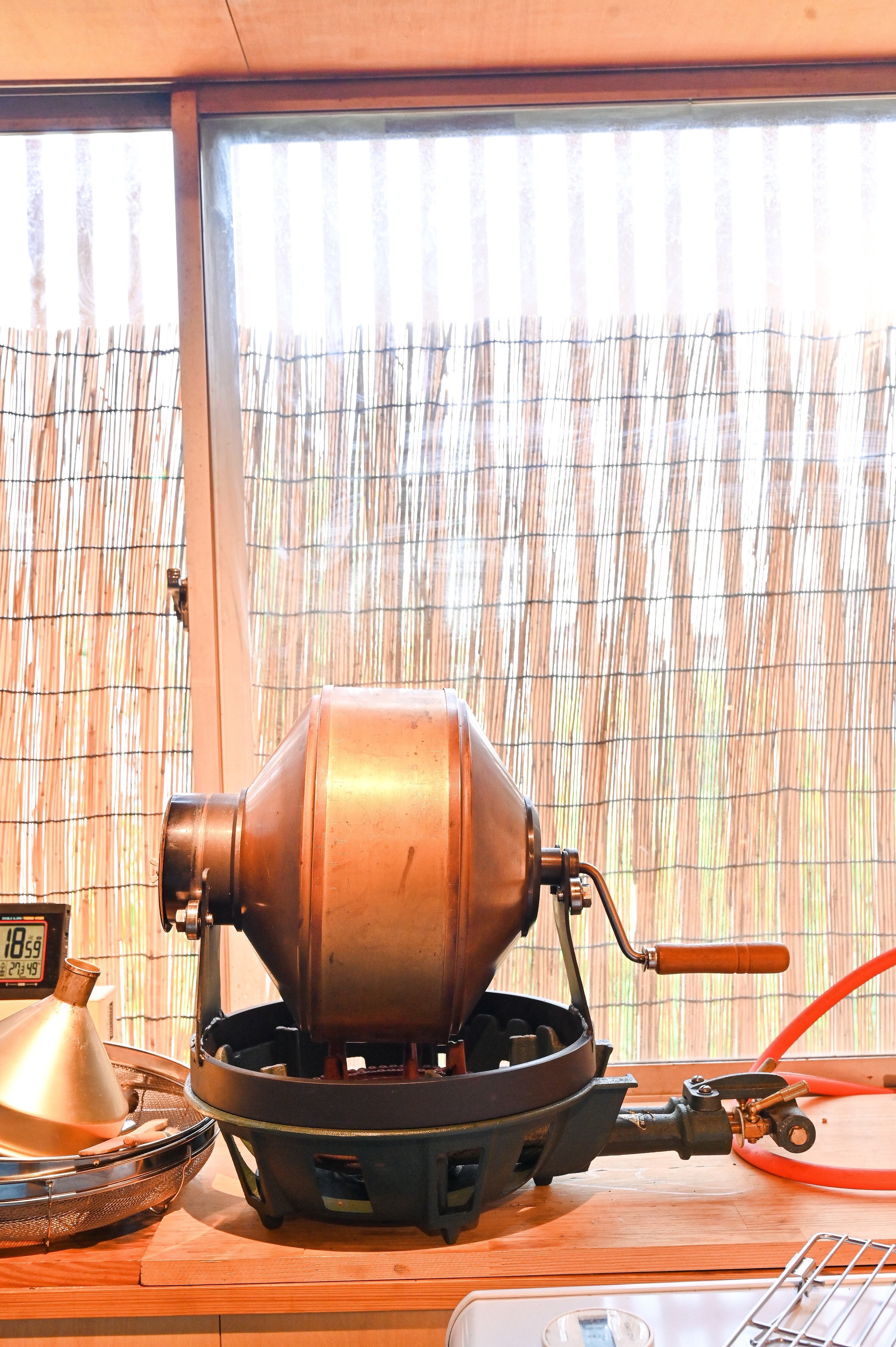 また真鍮製の手廻し焙煎機で少量ずつ丁寧に焙煎しています。