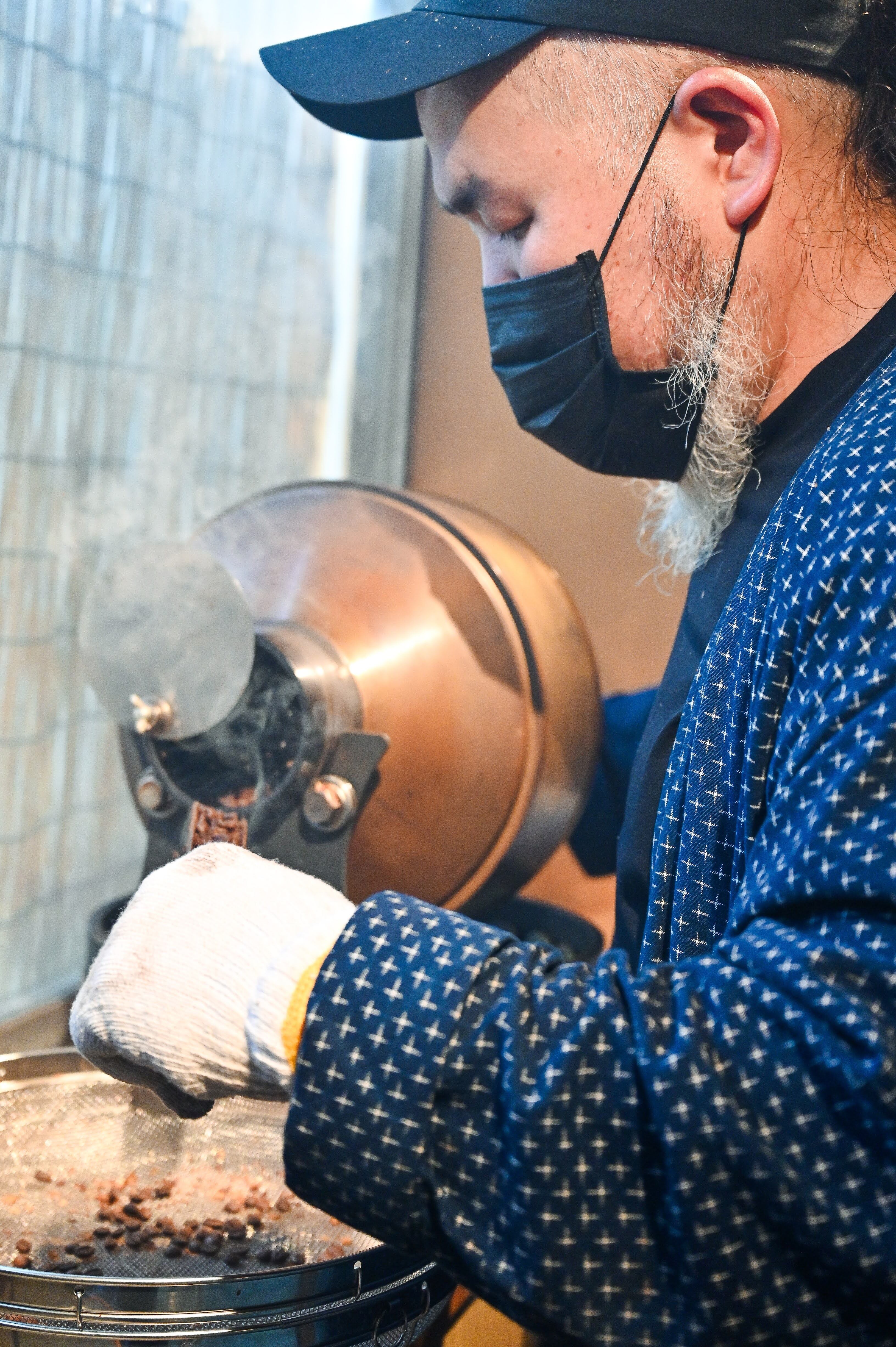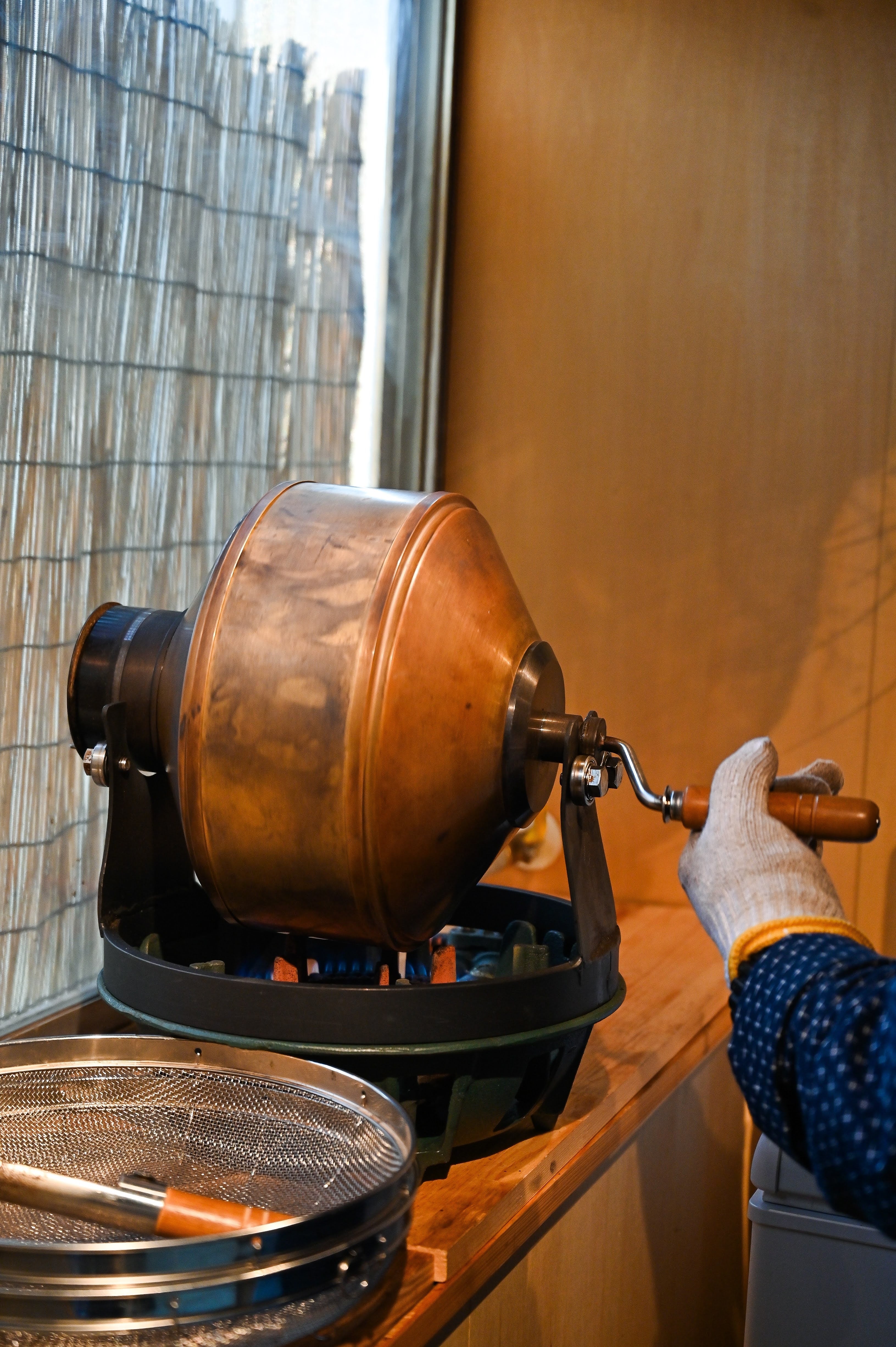 また真鍮製の手廻し焙煎機で少量ずつ丁寧に焙煎しています。